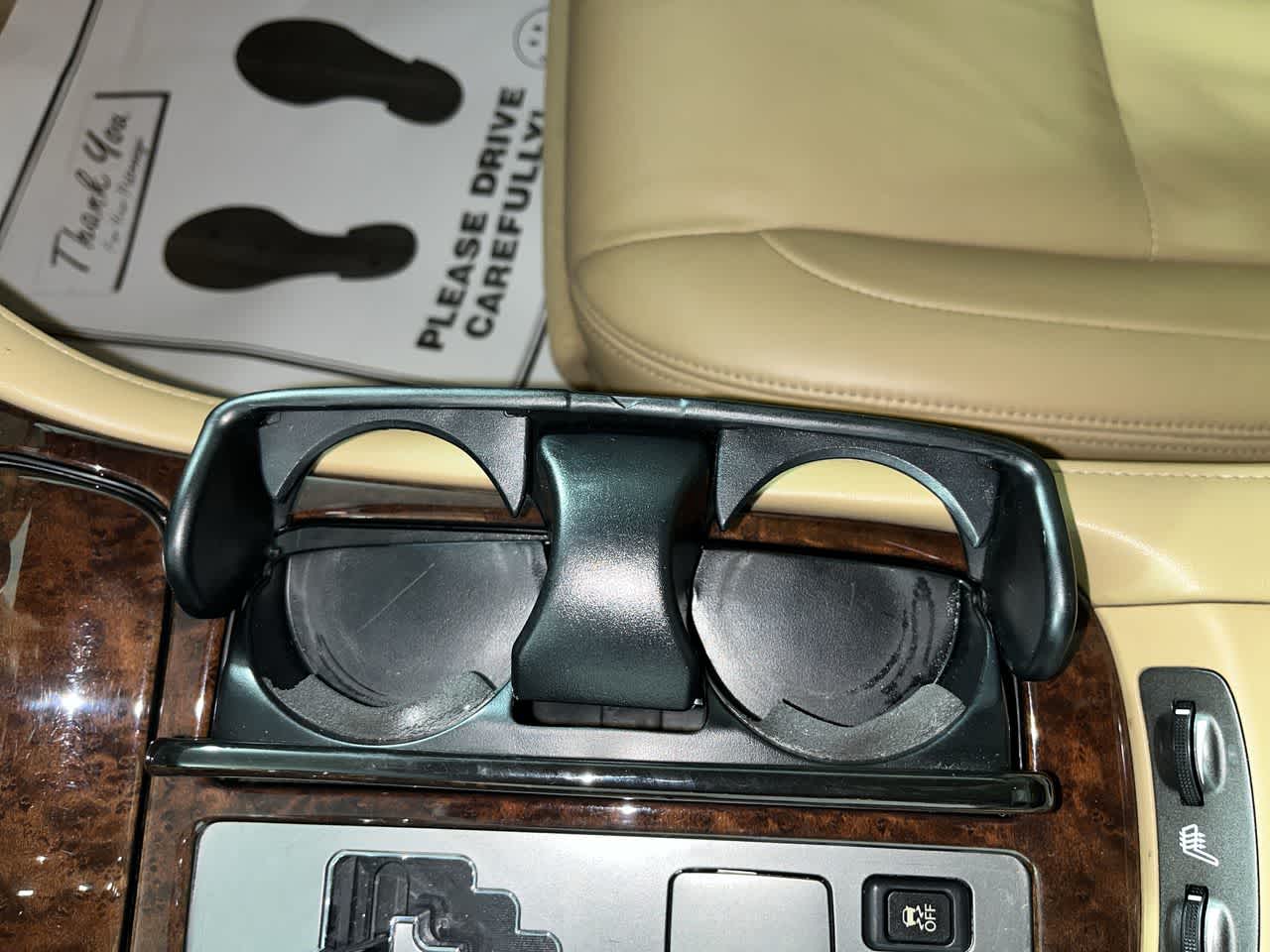 - Dual front cup holders w/wood cover panel