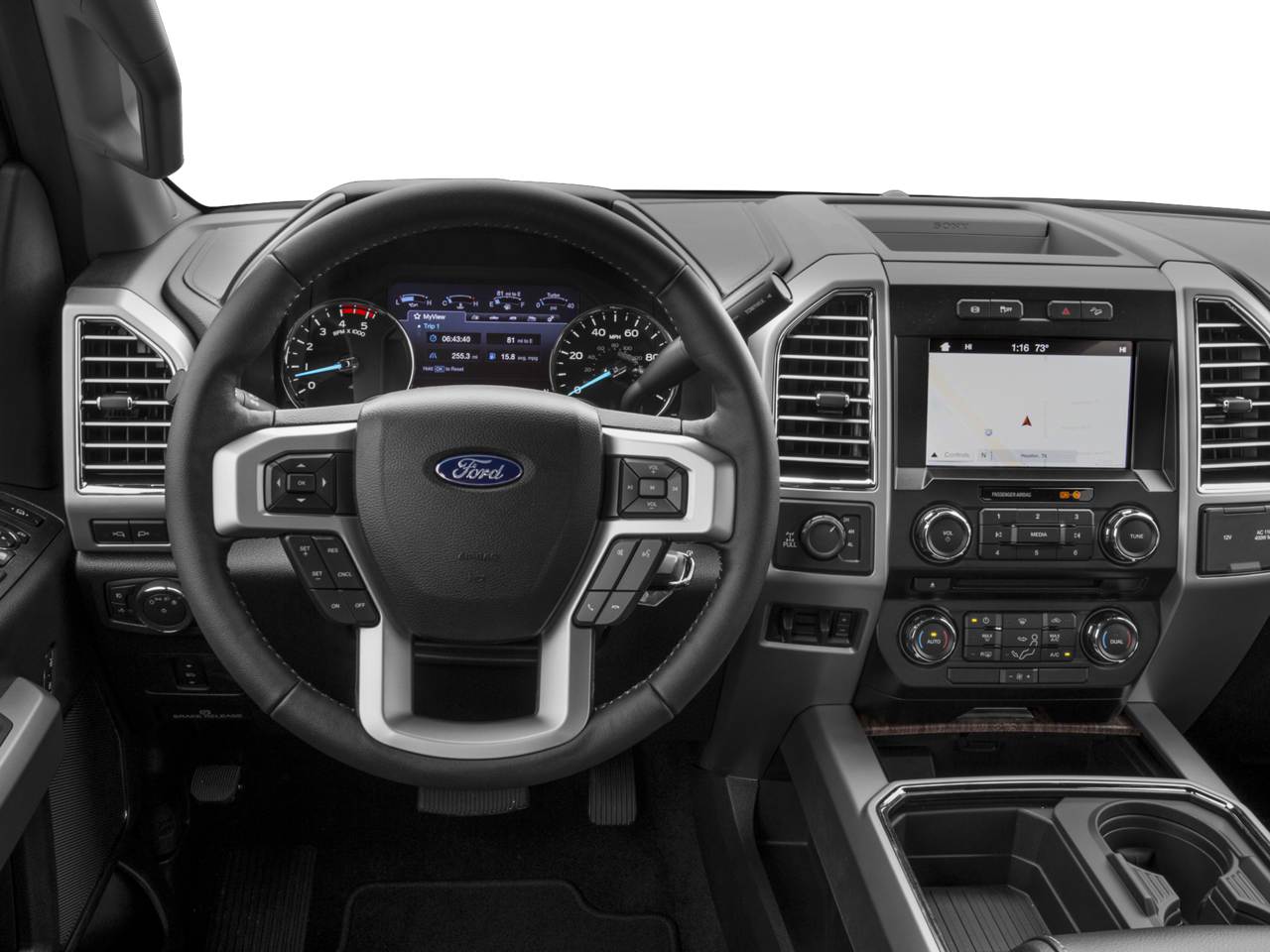 ENGINE: 6.7L 4V OHV POWER STROKE V8 TURBO DIESEL B20 4 valve OHV, manual push-button engine-exhaust braking and intelligent oil-life monitor, Extra Heavy-Duty 220 Amp Alternator, 34 Gallon Fuel Tank, 3.31 Axle Ratio, Dual 78-AH 750 CCA Batteries, TOW TECHNOLOGY BUNDLE Automatic High Beam, rain-sensing windshield wipers, Ultimate Trailer Tow Camera System, 360 degree camera system and trailer reverse guidance, NOTE: Does not include customer placed trailer camera, Rear CHMSL Camera, Display in center stack screen, LED Center High-Mounted Stop Lamp (CHMSL) w/cargo light and rear video camera, Adaptive Steering, Lane-Keeping Alert, TWIN PANEL POWER MOONROOF map lights and moonroof switches, CHROME PACKAGE Wheels: 18 Chrome PVD Aluminum, Body-Color Door Handles w/Chrome Insert, Unique Chrome Mirror Caps, 6 Angular Chrome Step Bars, Chrome Exhaust Tip, VOICE-ACTIVATED NAVIGATION HD and SiriusXM Traffic and Travel Link, NOTE: SiriusXM Traffic and Travel Link includes a, Services are not available in Alaska and Hawaii, TOUGH BED SPRAY-IN BEDLINER tailgate-guard, black box bed tie-down hooks and black bed attachment bolts, ELECTRONIC-LOCKING W/3.55 AXLE RATIO, REMOTE START SYSTEM, TRANSMISSION: TORQSHIFT 6-SPEED AUTOMATIC (6R140), SelectShift. Ford Lariat with Magnetic exterior and Black interior features a 8 Cylinder Engine with 440 HP at 2800 RPM*.