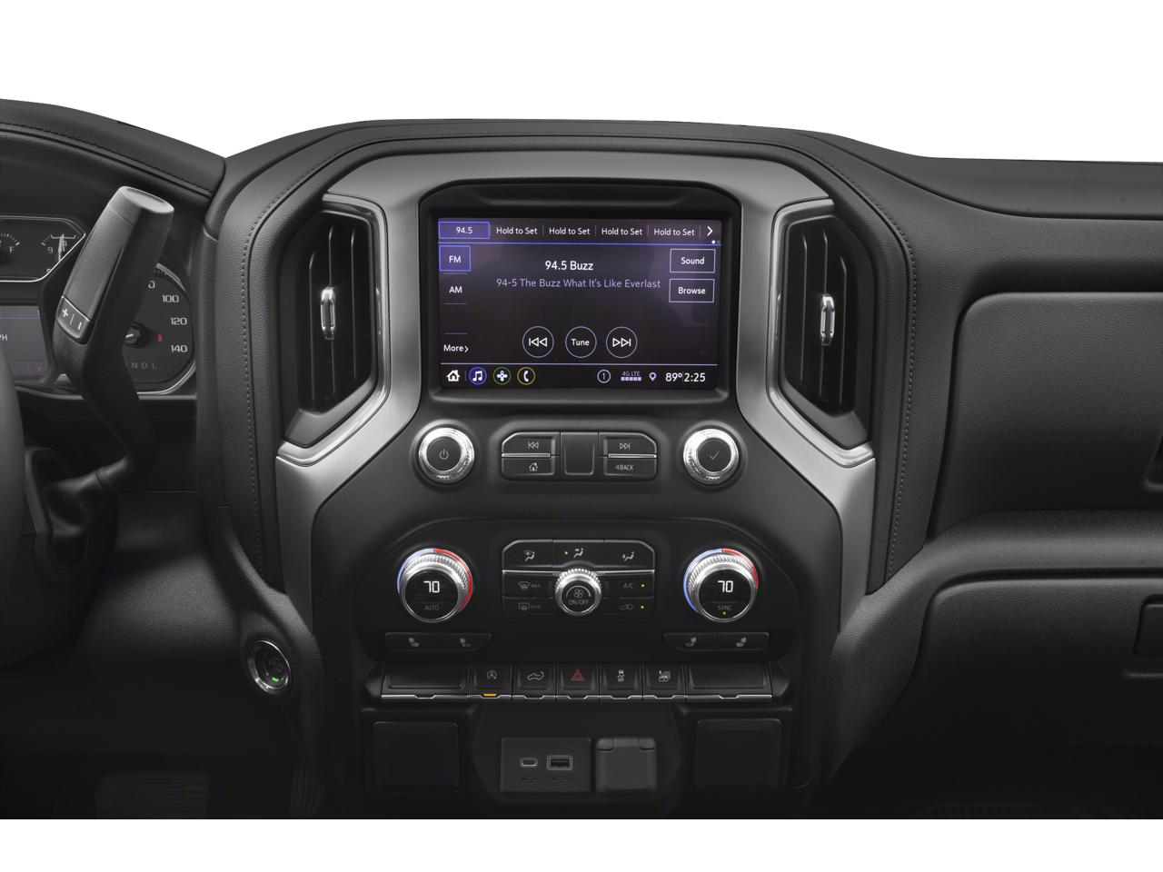 SLE CONVENIENCE PACKAGE includes (CJ2) dual climate control, (A2X) 10-way power driver seat including power lumbar, (KA1) heated driver and passenger seats, (KI3) heated steering wheel, (N37) manual tilt/telescoping steering column, (USS) 2 charge-only USB ports for second row, (C49) rear-window defogger, (N06) steering column lock, (ATH) Keyless Open and Start, (BTV) Remote Start, (UTJ) content theft alarm, (AZ3) front 40/20/40 split-bench with underseat storage, (QT5) EZ Lift power lock and release tailgate, (UF2) cargo box LED lighting, (KPA) rear auxiliary 12-volt power outlet and (B1J) rear wheelhouse liners, X31 OFF-ROAD PACKAGE includes Off-Road suspension, (JHD) Hill Descent Control, (NZZ) skid plates, (K47) high-capacity air filter and X31 hard badge Includes (UHN) 18" 6-spoke machined aluminum wheels with Dark Grey Metallic accents, (XCK) 265/65R18SL all-terrain, blackwall tires, (G80) locking differential and (NQH) 2-speed Auto-Trac transfer case. Includes (N10) dual exhaust when (L84) 5.3L EcoTec3 V8 engine is ordered. ENGINE, 5.3L ECOTEC3 V8 (355 hp [265 kW] @ 5600 rpm, 383 lb-ft of torque [518 Nm] @ 4100 rpm); featuring all-new Dynamic Fuel Management that enables the engine to operate in 17 different patterns between 2 and 8 cylinders, depending on demand, to optimize power delivery and efficiency, PREFERRED PACKAGE includes (UG1) Universal Home Remote, (A48) rear sliding power window, (KI4) 120-volt power outlet, (KC9) 120-volt box-mounted power outlet, (IOS) 8" diagonal Premium GMC Infotainment System, (U2K) SiriusXM Radio, (UVB) HD Rear Vision Camera, (MCR) USB Ports (Instrument Panel with bench seat) and (U2L) HD Radio Crew Cab models include (R7O) Cloth Rear Seat Storage Package.), 4" ROUND, BED LINER, SPRAY-ON Pickup bedliner with GMC logo, SEAT, CLOTH REAR WITH STORAGE PACKAGE, 60/40 FOLDING BENCH includes seatback storage on left and right side, center fold out armrest with 2 cupholders, (includes child seat top tether anchor), PREMIUM GMC INFOTAINMENT SYSTEM WITH 8" DIAGONAL COLOR TOUCH-SCREEN, INCLUDES MULTI-TOUCH DISPLAY, AM/FM STEREO Bluetooth® streaming audio for music and most phones; featuring Android Auto® and Apple CarPlay® capability for compatible phones, advanced voice recognition, in-vehicle apps, personalized profiles for infotainment and vehicle settings, ELECTRONICALLY CONTROLLED with overdrive and tow/haul mode. Includes Cruise Grade Braking and Powertrain Grade Braking (STD). GMC SLE with SATIN STEEL METALLIC exterior and JET BLACK interior features a 8 Cylinder Engine with 355 HP at 5600 RPM*.