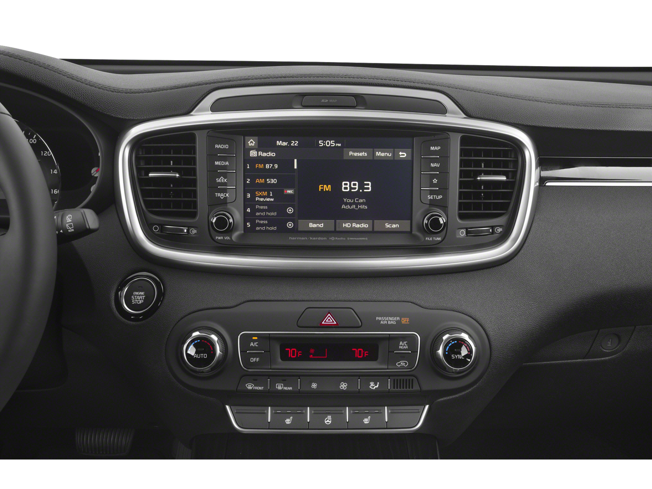 - Radio: UVO eServices w/Premium Navigation -inc: 8" touch-screen display, AM/FM radio, MP3, Android Auto, Apple CarPlay, SiriusXM, voice recognition, rear-camera display, USB/auxiliary input jacks and Bluetooth® wireless technology