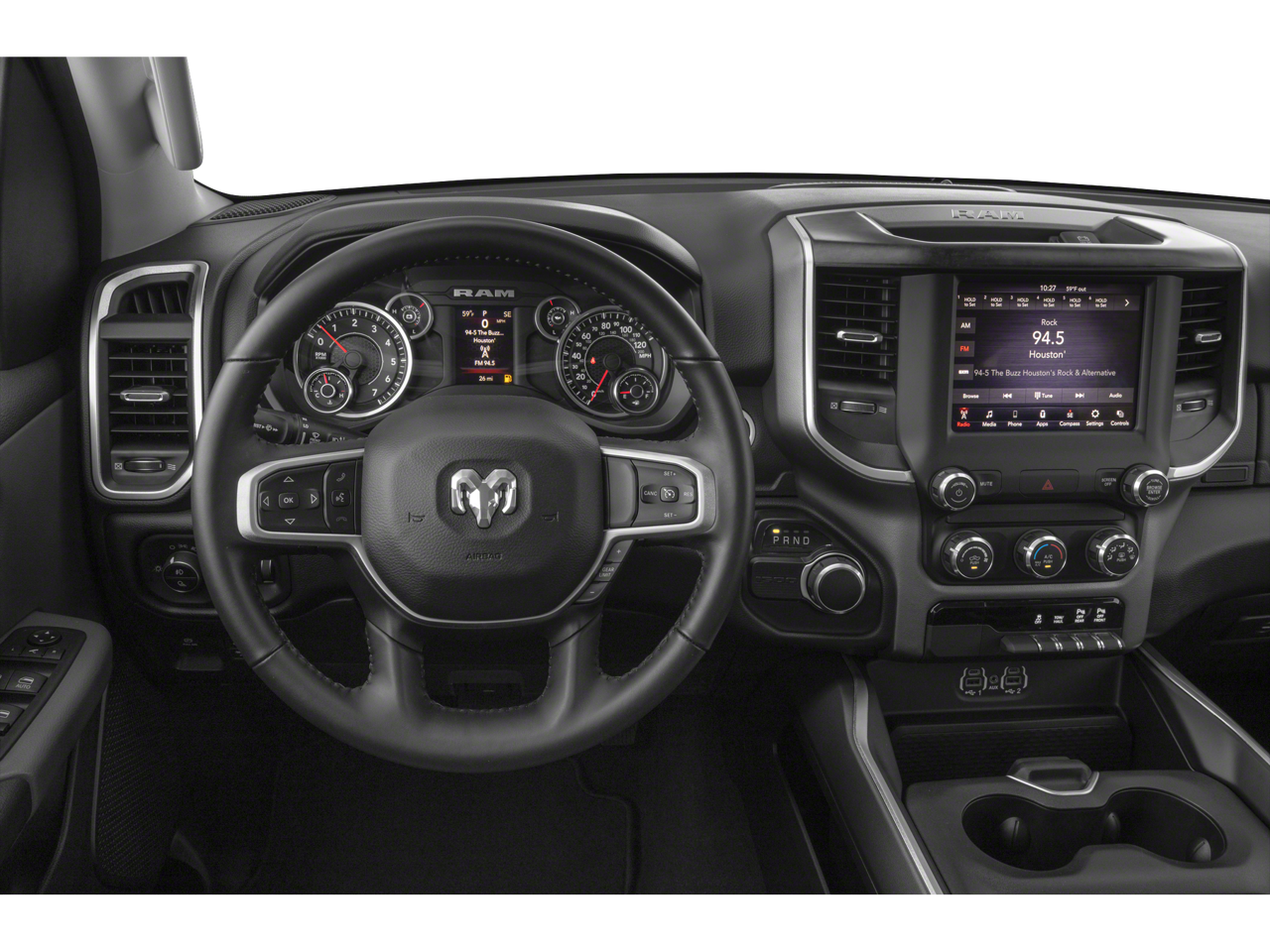 ENGINE: 5.7L V8 HEMI MDS VVT Active Noise Control System, 180 Amp Alternator, Heavy Duty Engine Cooling, GVWR: 7,100 lbs, Dual Rear Exhaust w/Bright Tips, HEMI Badge, BIG HORN LEVEL 1 EQUIPMENT GROUP SiriusXM Radio Service, Radio: Uconnect 4 w/8.4 Display, Rear Window Defroster, Rear View Auto Dim Mirror, Power Adjustable Pedals, For More Info, Call 800-643-2112, Rear Power Sliding Window, Rear Dome w/On/Off Switch Lamp, Glove Box Lamp, Power 4-Way Driver Lumbar Adjust, Power 8-Way Driver Seat, Auto Dim Exterior Driver Mirror, Foam Bottle Insert (Door Trim Panel), Class IV Receiver Hitch, Black Premium Power Mirrors, Big Horn IP Badge, SiriusXM Satellite Radio, Exterior Mirrors w/Supplemental Signals, Exterior Mirrors Courtesy Lamps, Universal Garage Door Opener, Cluster 3.5 TFT Color Display, Power-Folding Mirrors, 2nd Row In Floor Storage Bins, Sun Visors w/Illuminated Vanity Mirrors, BED UTILITY GROUP MOPAR Spray In Bedliner, MOPAR 4 Adjustable Cargo Tie-Down Hooks, Pick-Up Box Lighting, MOPAR Deployable Bed Step, RADIO: UCONNECT 4C NAV W/8.4 DISPLAY Google Android Auto®, SiriusXM Radio Service, SiriusXM Traffic Plus, SiriusXM Satellite Radio, USB Host Flip, Disassociated Touchscreen Display, HD Radio, For Details, Visit DriveUconnect.com, Integrated Center Stack Radio, For More Info, Call 800-643-2112, 1-Yr SiriusXM Guardian Trial, Air Conditioning ATC w/Dual Zone Control, GPS Navigation, SiriusXM Travel Link, 4G LTE Wi-Fi Hot Spot, 8.4 Touchscreen Display, Apple CarPlay®, WHEEL TO WHEEL SIDE STEPS, BLACK, DELUXE CLOTH BUCKET SEATS Power 8-Way Driver Seat, Center Console Parts Module, Bucket Seats, Manual Adjust 4-Way Front Passenger Seat, Full Length Floor Console, Power 4-Way Driver Lumbar Adjust, TRI-FOLD TONNEAU COVER, ANTI-SPIN DIFFERENTIAL REAR AXLE, PARKSENSE FRONT/REAR PARK ASSIST W/STOP, REMOTE START SYSTEM, TRANSMISSION: 8-SPEED AUTOMATIC (8HP75).