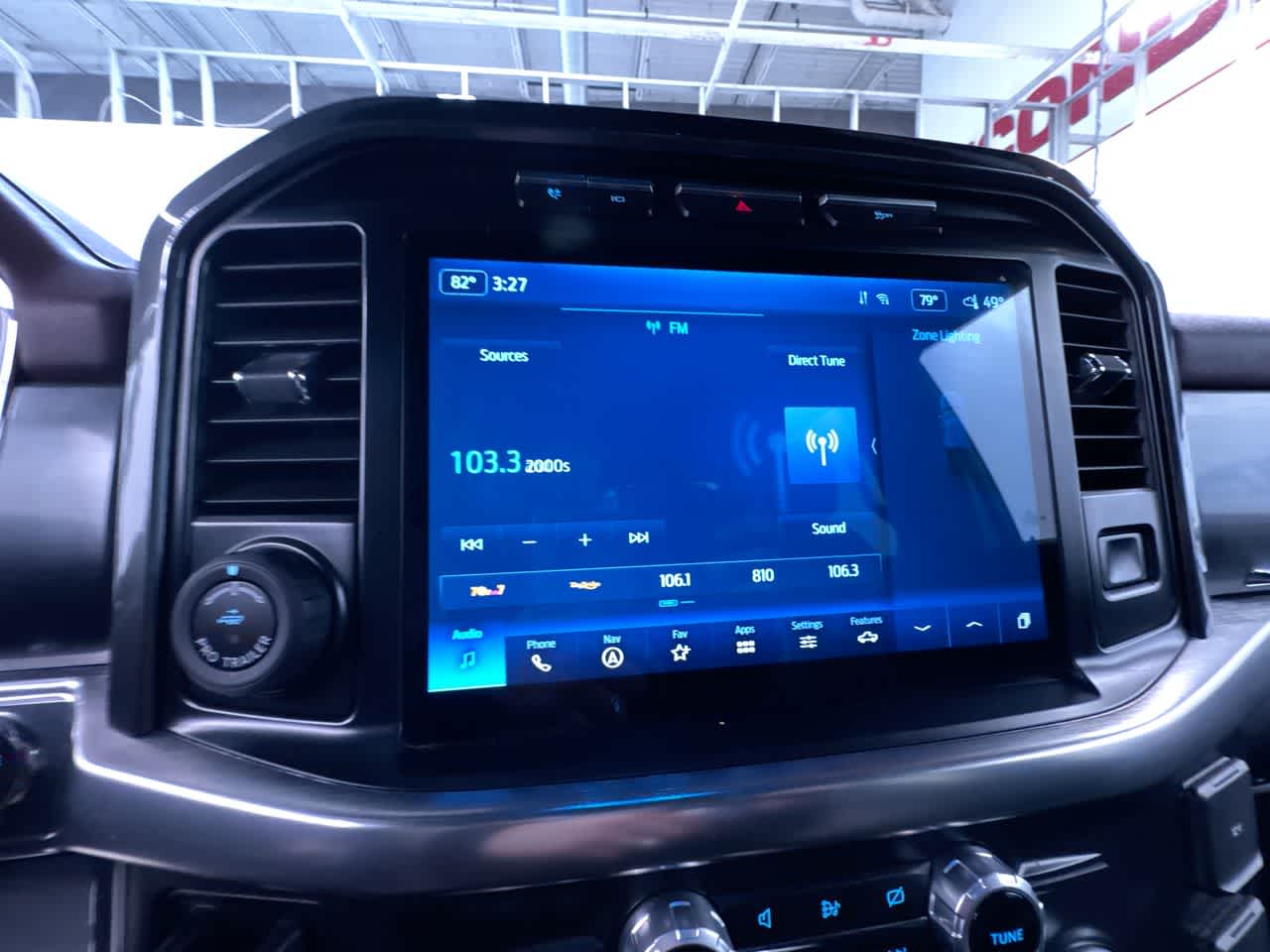 ENGINE: 3.5L POWERBOOST FULL-HYBRID V6 GVWR: 7,350 lbs Payload Package, Electronic Locking w/3.73 Axle Ratio, LARIAT SPORT APPEARANCE PACKAGE unique interior finish, Box Side Decals, Chrome Single-Tip Exhaust, Wheels: 18" 6-Spoke Machined Aluminum, gloss black painted pockets, Accent-Color Angular Step Bars, Dark 2-Bar & 1 Minor Bar Style Grille, black surround and black mesh, Body-Color Front & Rear Bumpers, RETRACTABLE TONNEAU PICKUP BOX COVER, EQUIPMENT GROUP 501A MID Radio: B&O Sound System by Bang & Olufsen, HD radio and 8 speakers including subwoofer, Universal Garage Door Opener, Onboard 400W Outlet, Replaces two (2) front USB charge only ports and an additional outlet in the bed, TOW TECHNOLOGY PACKAGE smart trailer tow connector and BLIS w/trailer tow coverage where BLIS is available, Integrated Trailer Brake Controller, 360 Degree Camera, trailer reverse guidance, Pro Trailer Backup Assist. Ford LARIAT with Iconic Silver exterior and Black interior features a V6 Cylinder Engine with 400 HP at 6000 RPM*.