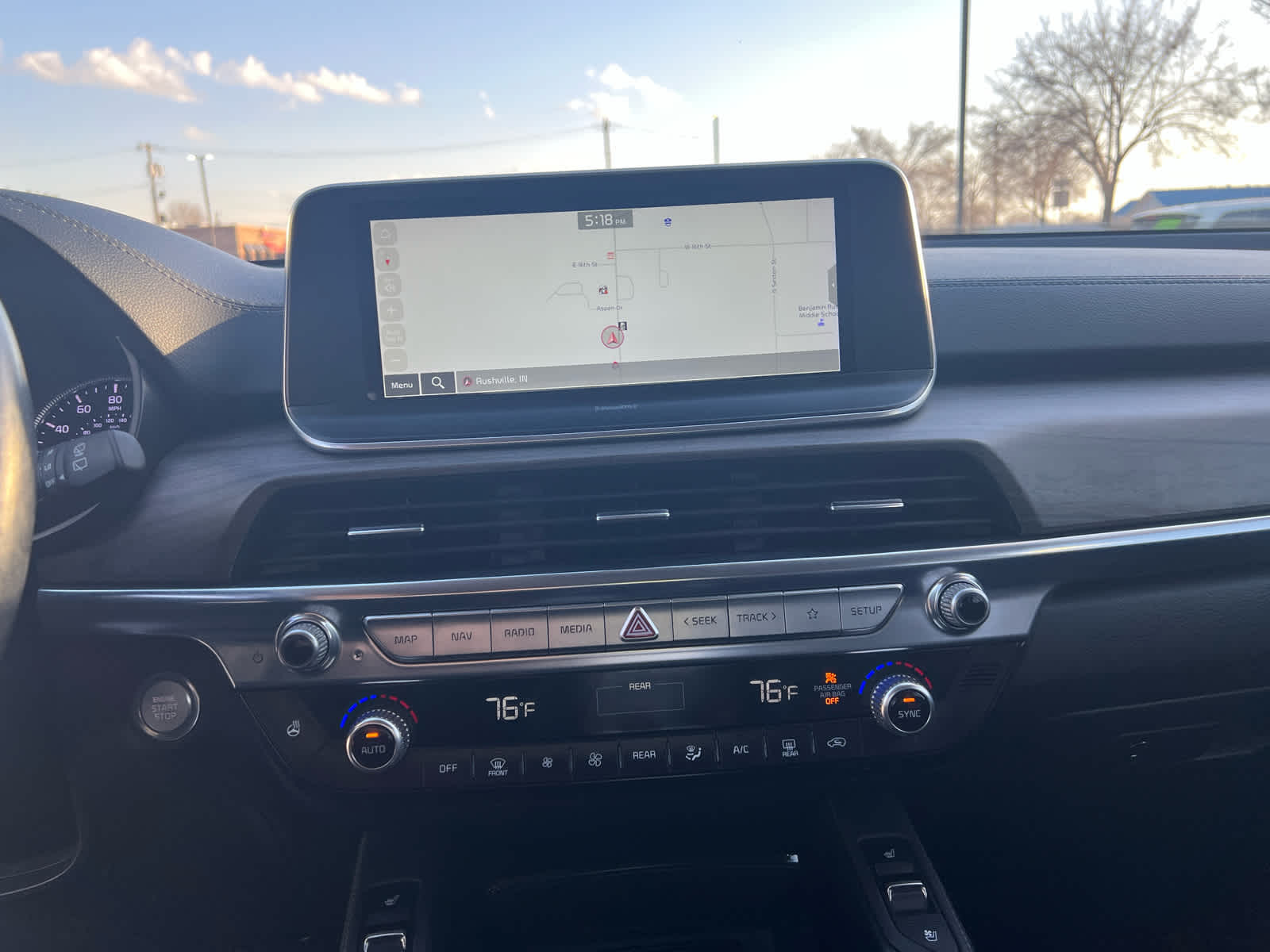 Satin Chrome Roof Rails, Anodized, Wheels: 20" x 7.5" Machined Alloy, Tires: 245/50R20, LED Headlamps, GVWR: 5,736 lbs, 2nd Row Captain Chairs, reclining feature Kia EX with Dark Moss exterior and Black interior features a V6 Cylinder Engine with 291 HP at 6000 RPM*.