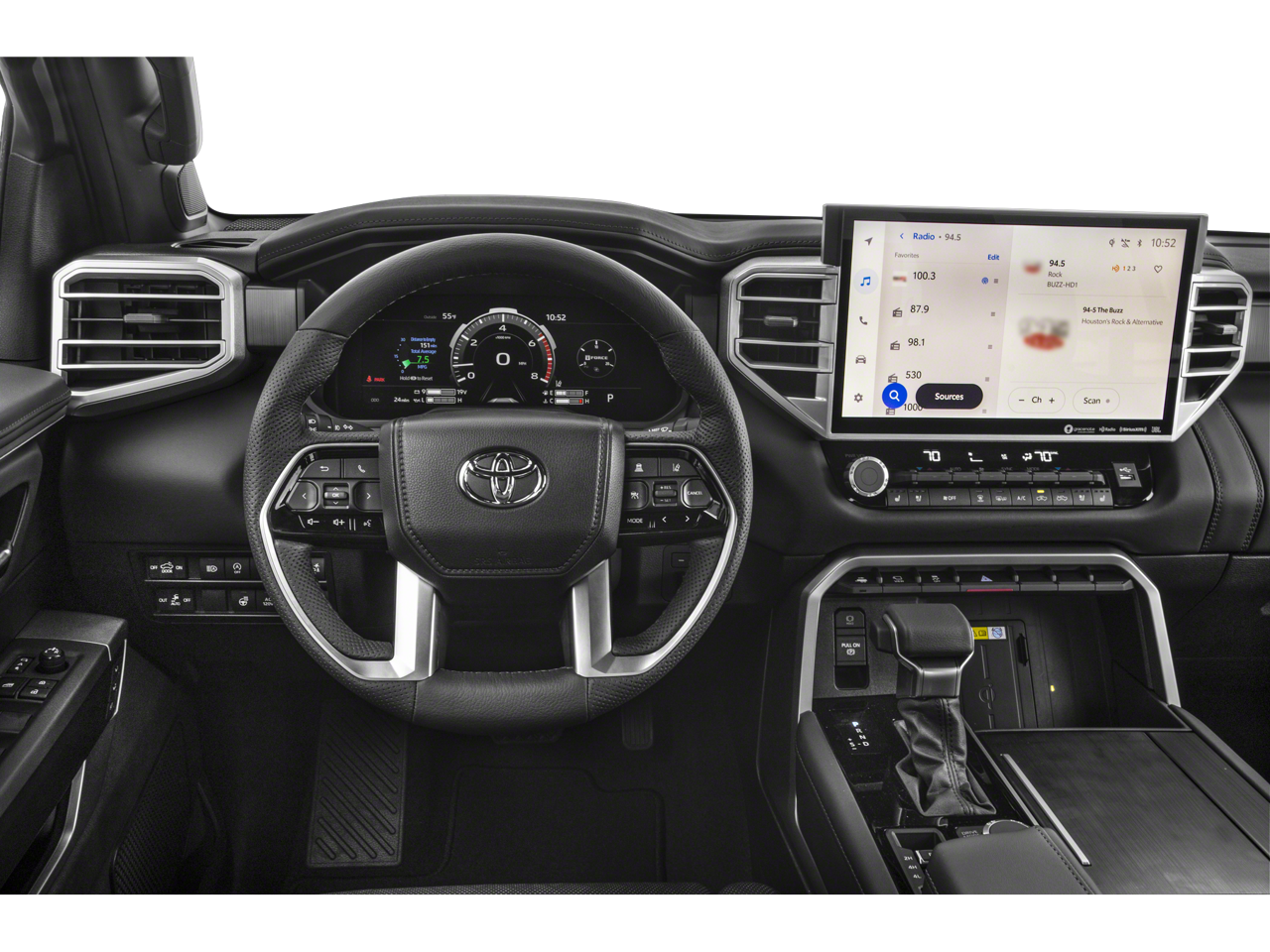 PANORAMIC VIEW MONITOR PACKAGE Panoramic View Back Monitor, BLACK DUAL-STEP RUNNING BOARD (TMS), NON-SKID SPRAY-ON BED LINER (TMS), RADIO: PREMIUM AUDIO W/JBL 12 JBL speakers, Human Machine Interface (HMI), 14 touchscreen, wireless Apple CarPlay®, Android Auto®, virtual Intelligent Assistant, cloud-based navigation system w/real-time Over The Air (OTA) updates for mapping and Points Of Interest (POI), voice activation and Bluetooth®, HEATED LEATHER STEERING WHEEL.