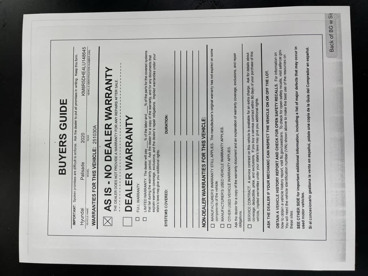 Dealer Comments